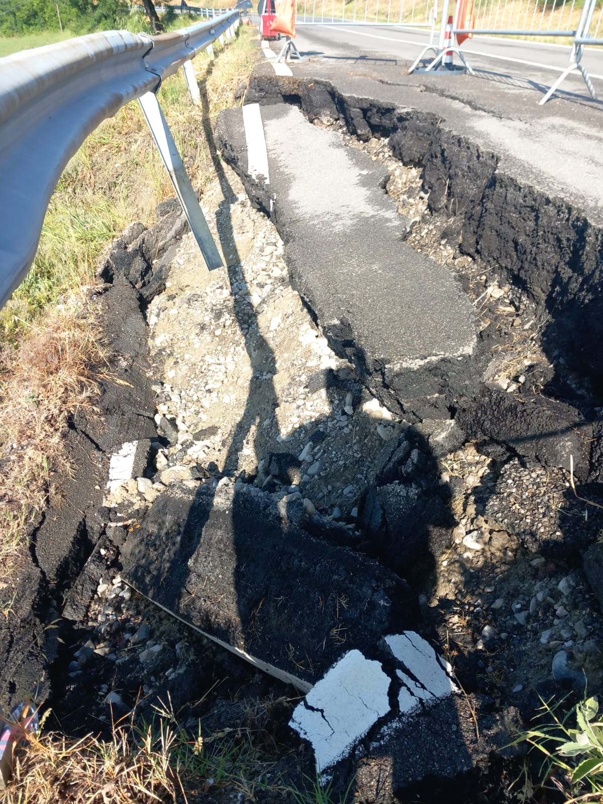 In particolare, lungo la strada provinciale 21, sopra l’abitato di Marano sul Panaro, ha ceduto un tratto di scarpata a valle della carreggiata, lungo un tratto di circa 20 metri, che era già stato transennato nelle scorse settimane a seguito di una prima fessurazione stradale, mentre sulla strada provinciale 42 a Pievepelago, si è aperta una porzione di sede viaria su cui la Provincia di Modena era intervenuta recentemente a seguito di movimenti franosi.