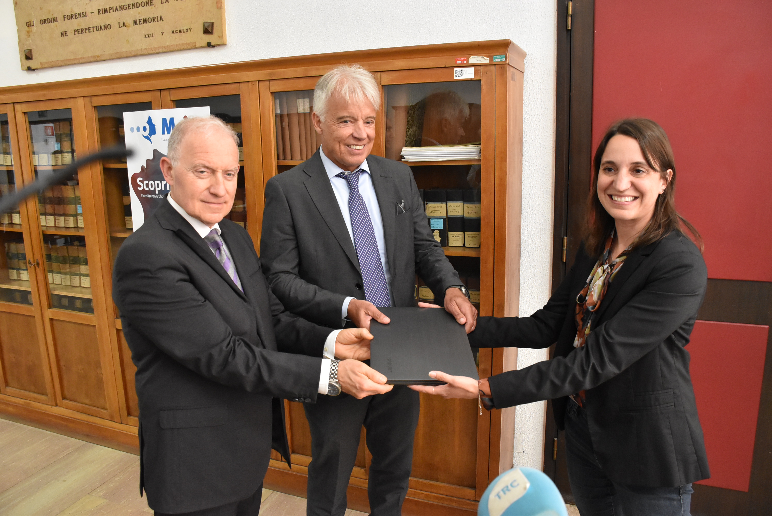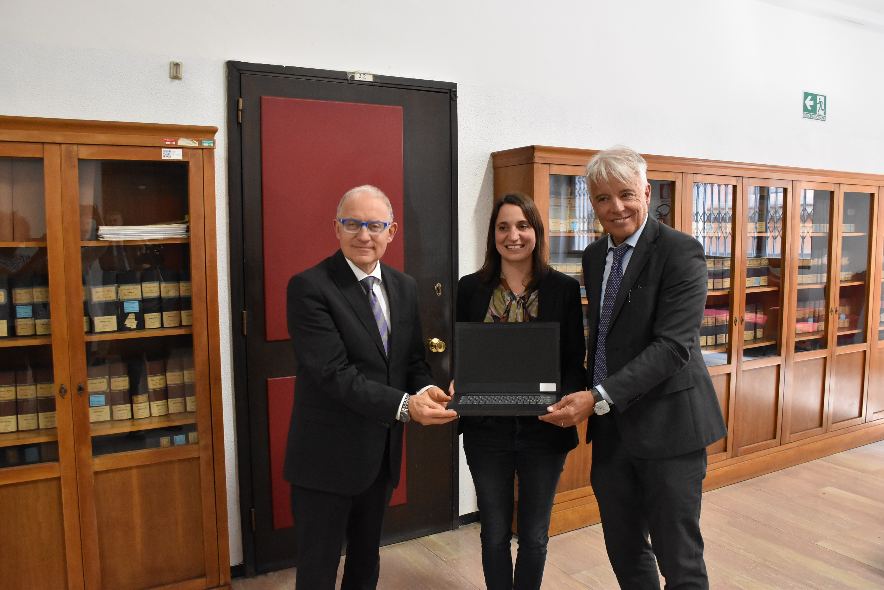 Giovedì 5 giugno si è tenuta, nella sede del Tribunale di Modena, la consegna simbolica di un personal computer da parte dell’assessora ad agenda digitale, legalità, contrasto alle povertà ed economia solidale della Regione Emilia-Romagna Elena Mazzoni al presidente del Tribunale di Modena Alberto Rizzo e al Procuratore della Repubblica di Modena Luca Masini, in occasione della cessione a titolo gratuito e definitivo da parte della Regione Emilia-Romagna al Tribunale di Modena e alla Procura della Repubblica di Modena di 90 personal computer, di cui 50 fissi e 40 portatili, per l’impiego da parte del personale degli uffici competenti.
