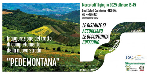 In occasione dell’inaugurazione e apertura al transito della strada, i giornalisti sono invitati a partecipare, con ritrovo nel parcheggio antistante la chiesa parrocchiale di Ca’ di Sola (Via Modena, 133 – 41014 Castelvetro di Modena)
