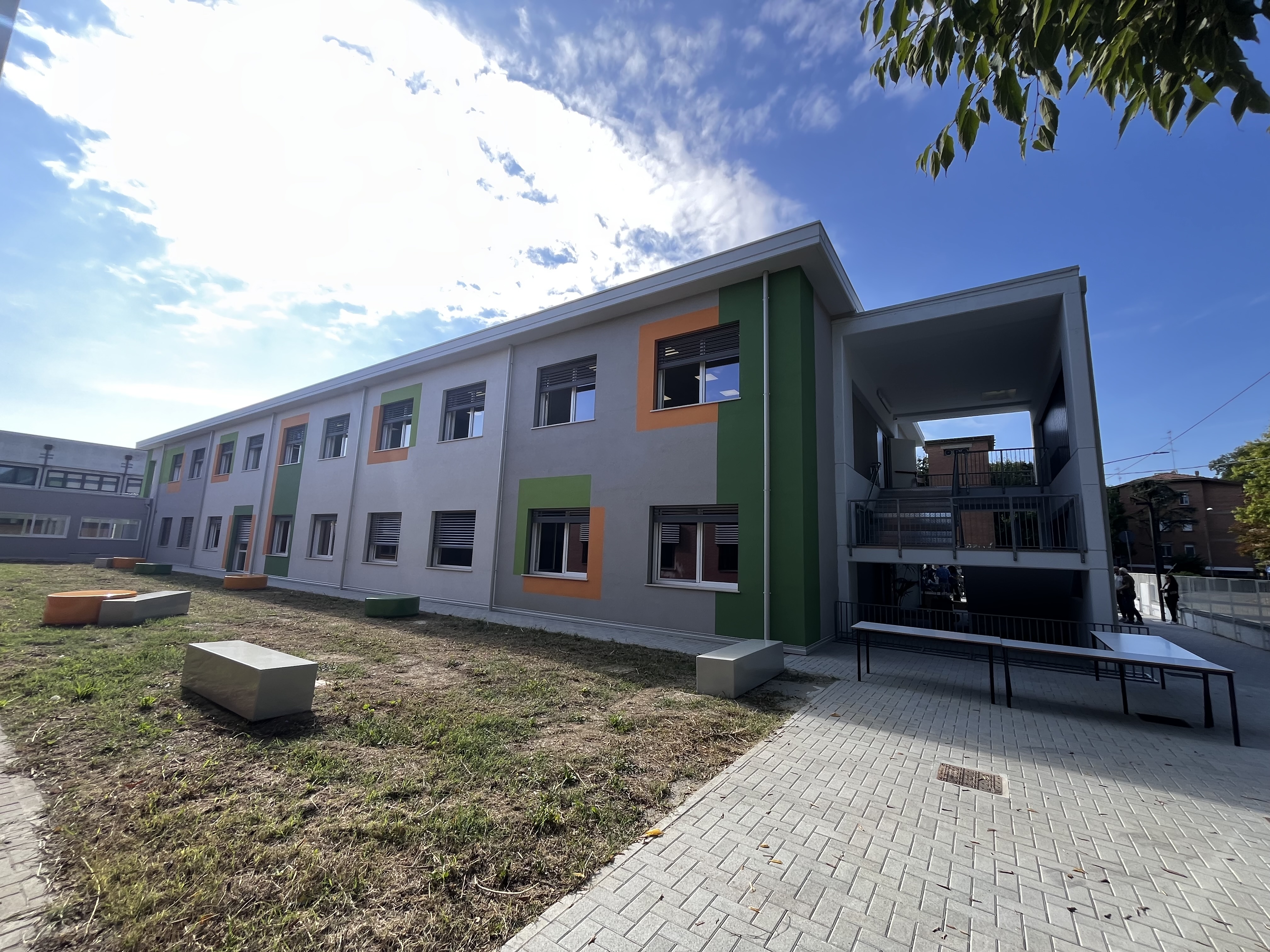 I lavori hanno previsto la realizzazione di un nuovo edificio scolastico, costruito in adiacenza al liceo Fanti, a due piani con 18 aule destinate all’attività didattica e laboratori di circa 55 metri quadrati ciascuna e con i relativi servizi igienici, in grado di ospitare complessivamente circa 500 studenti.