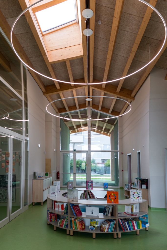Costruito con criteri di altissima efficienza energetica, il nido “Fantasia” intende valorizzare il progetto pedagogico in un’ottica di sostenibilità ambientale, come precisa l’Assessore ai Lavori pubblici Matteo Ferrari: “Il lotto si estende su 2750 mq, con un ampio giardino di circa 2000 mq. L’edificio si caratterizza come struttura NZEB (Nearly Zero Energy Building) ed è composto da due sezioni con uno spazio d’incontro al centro e un laboratorio. L’area esterna è stata progettata insieme all’ente gestore seguendo una filosofia montessoriana, con un labirinto di siepe ad altezza bambino, una piccola collina e una zona dedicata all’orto. Grande attenzione è stata riservata anche all’illuminazione, gestita da un sistema di domotica che regola la luce interna in base all’illuminazione che arriva dall’esterno per garantire allo stesso tempo comfort luminoso e risparmio energetico”.