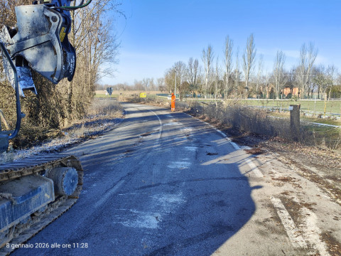 Sono in corso di esecuzione i lavori di pulizia dei fossi stradali della tangenziale di Nonantola che riguardano la rimozione di alberature ed arbusti che sono nati spontaneamente all’interno dei fossi stradali e che potrebbero pregiudicare la sicurezza stradale ed il deflusso delle acque meteoriche.