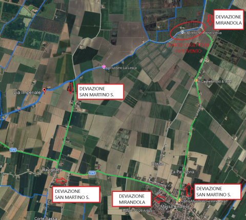 In particolare, gli itinerari alternativi prevedono il transito veicolare per le frazioni di Pavignane e Massa Finalese.