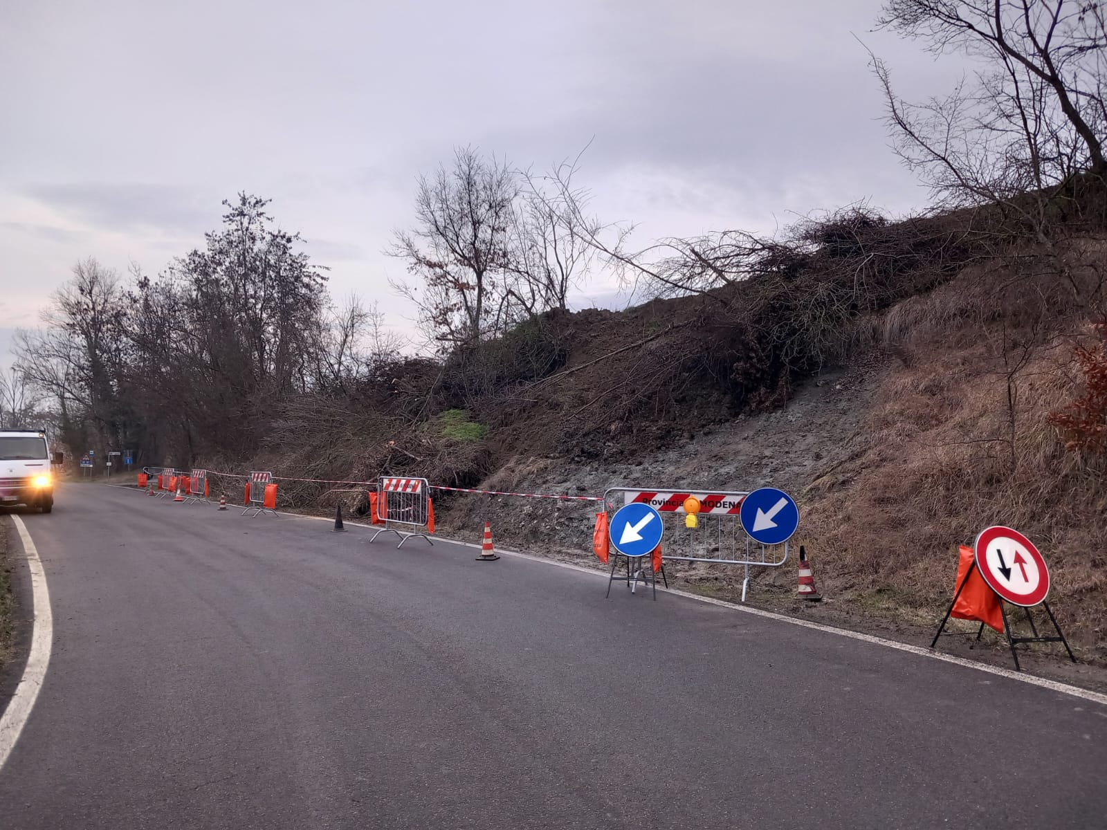 Sulla strada provinciale 19, in località Casa Azzoni nel comune di Prignano sulla Secchia, si è verificato, nella giornata di domenica 8 febbraio, il distacco di parte del versante di monte della strada, causando la parziale occupazione della sede viaria.