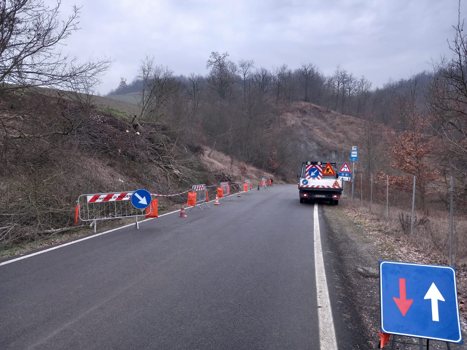 I tecnici della Provincia di Modena e della ditta Canovi Costruzioni srl hanno provveduto ad un parziale intervento di messa in sicurezza della strada, che al momento risulta aperta con senso unico alternato, in attesa di un sopralluogo tecnico per valutarne la gravità e quindi quale siano le azioni ad approntare.