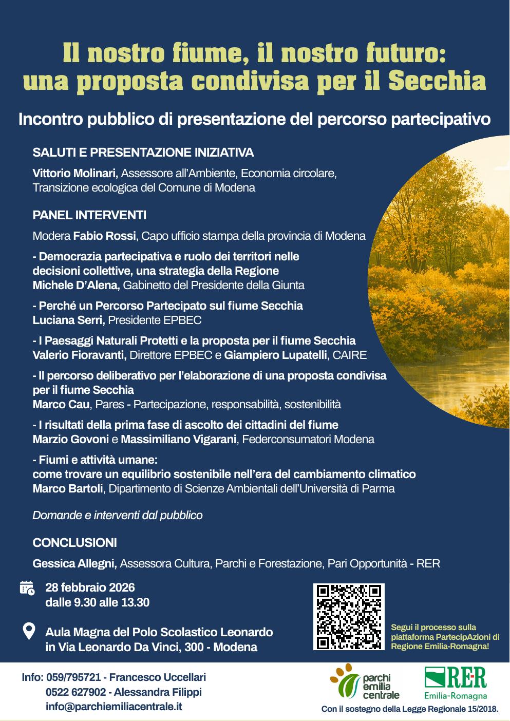 Per la direttrice Luciana Serri «il percorso partecipativo rappresenta per noi una modalità innovativa per definire e proporre l’istituzione di aree protette. Il fiume appartiene a tutti: agricoltori, associazioni, cittadini. Proprio per questo, la nascita del Paesaggio Protetto deve essere un’idea collettiva. Il nostro obiettivo è restituire al Secchia la sua centralità, rendendolo un luogo sicuro, vivo e capace di generare valore per l’intera comunità».